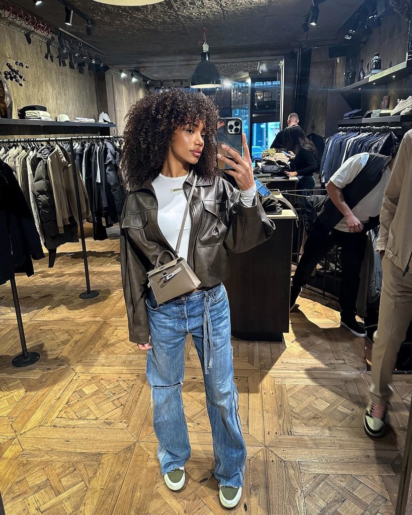 That leather jacket is doing all the heavy lifting here. It instantly adds structure and edge to the simplest outfit. The white tee keeps things fresh and clean, while those distressed jeans bring in just enough personality. And that crossbody bag? Peak practical chic.