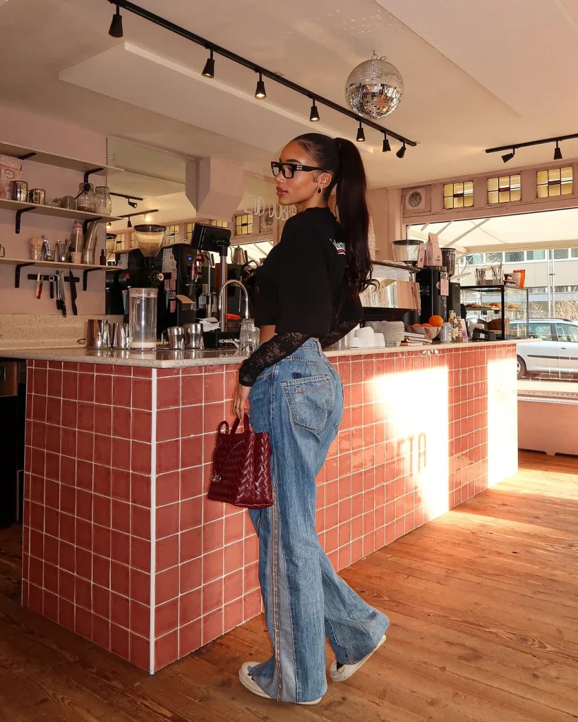 r/womensstreetwear proves that business casual can be comfortable with that black mesh long-sleeve top and wide-leg denim. This is the “effortlessly pulled together” look we’re all trying to achieve.