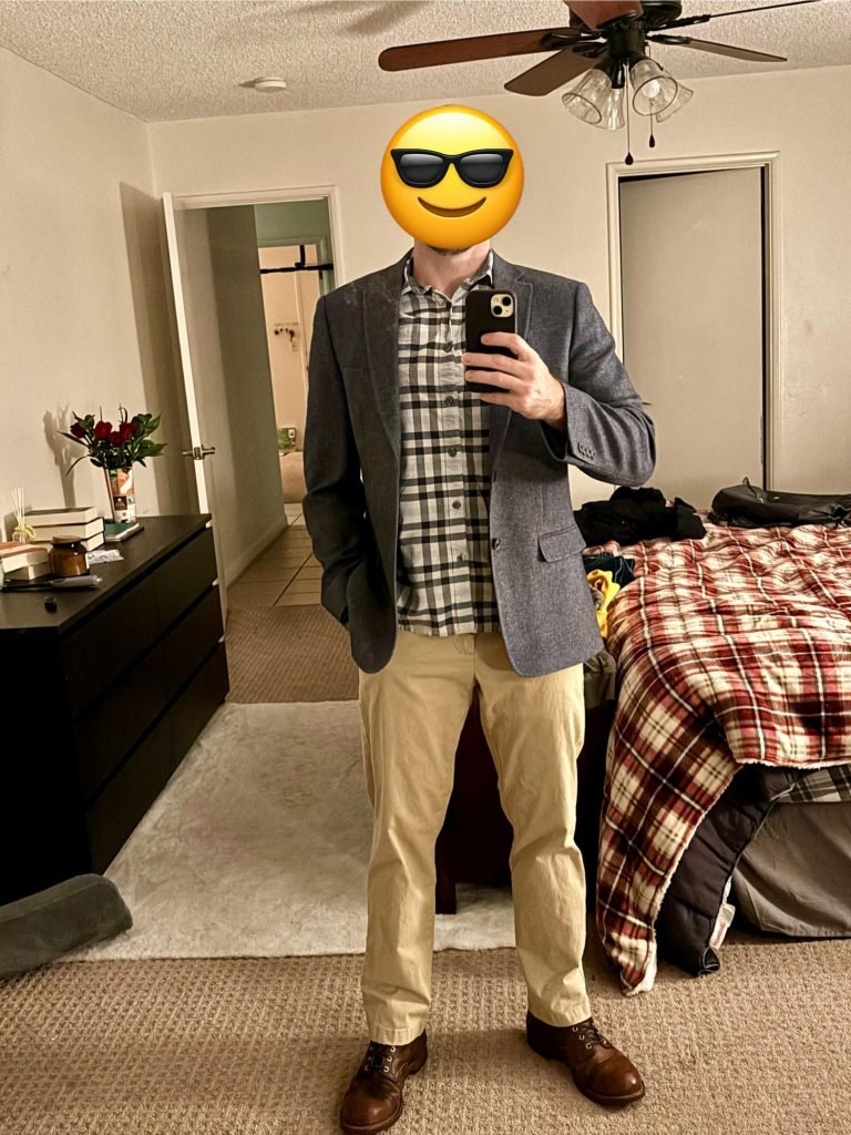 r/mensfashion nails the preppy-casual vibe with that grey blazer over a gingham shirt and khaki chinos. This is polished but approachable, professional but not stuffy.