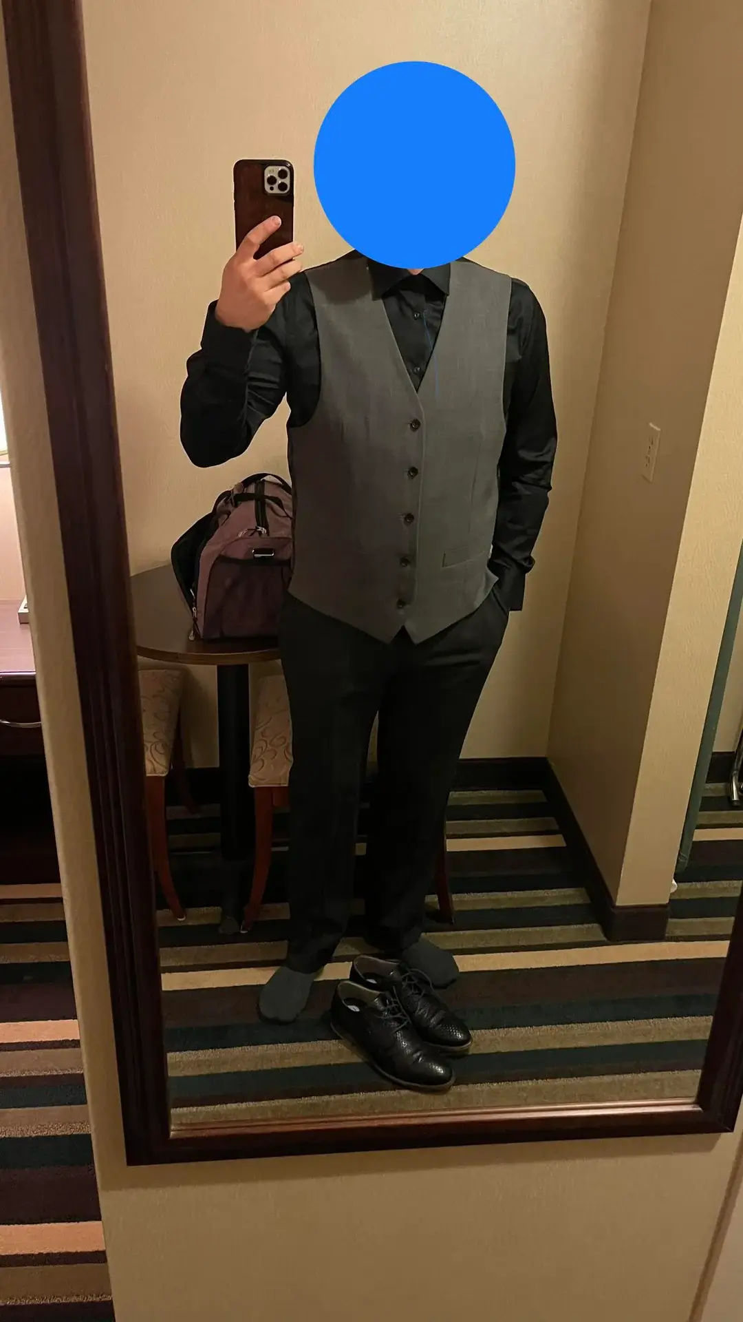 r/mensfashionadvice goes bold with a grey vest over a black shirt and trousers. This is “I know exactly what I’m doing” energy that commands respect without being intimidating.