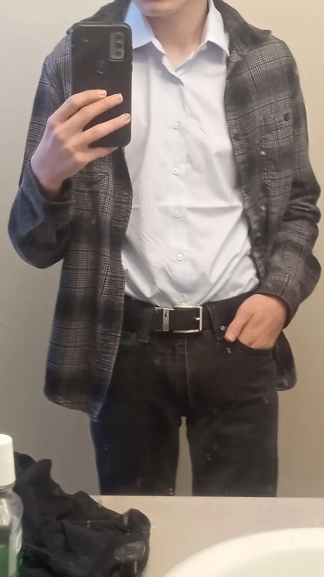 - Dark jeans that actually look professional