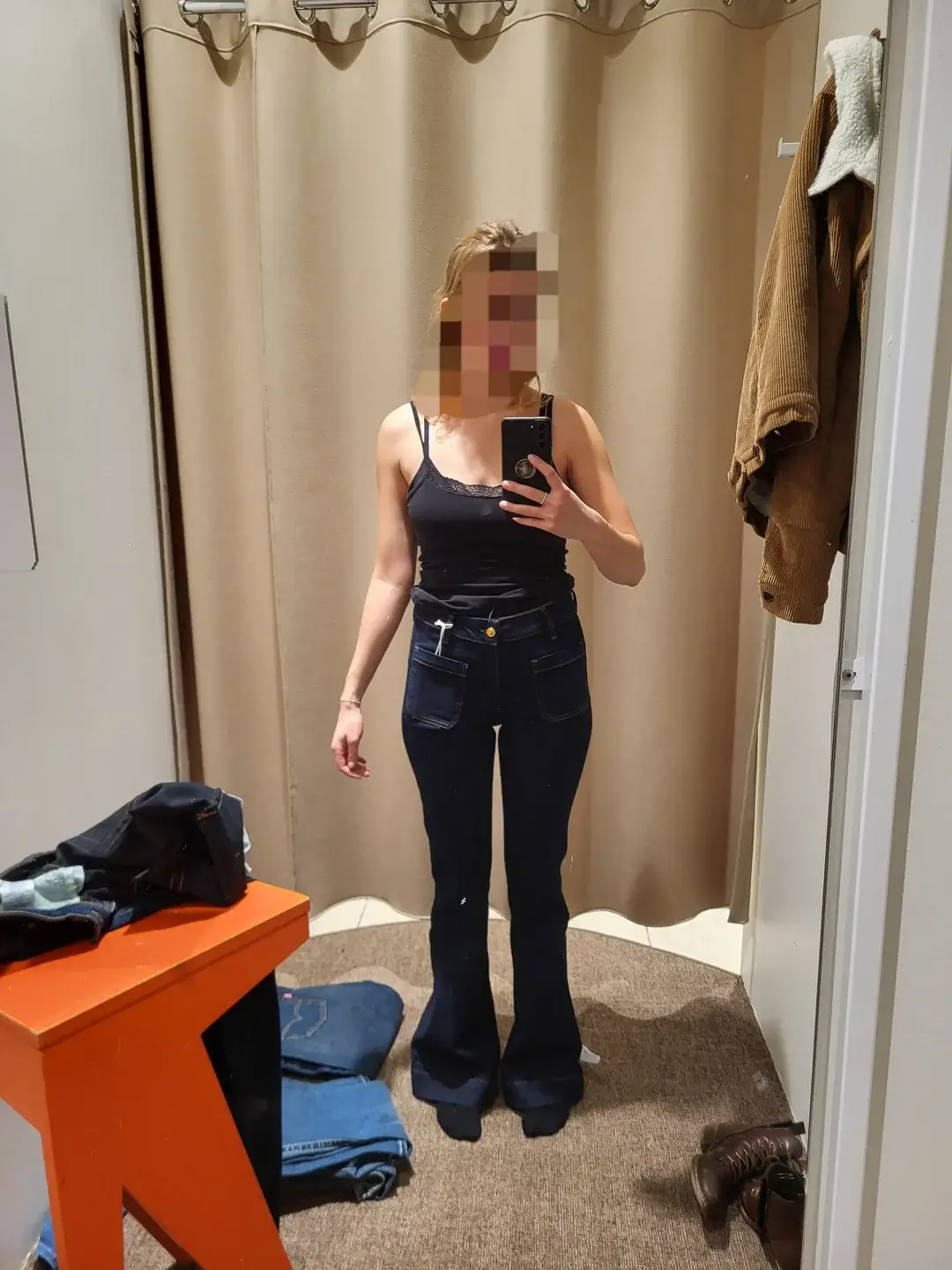 Black on black always looks intentional, never boring. r/DressForYourBody shows how a simple black tank and flared jeans with platform shoes creates a sleek, modern silhouette. This is minimalism done right—no fuss, maximum impact.