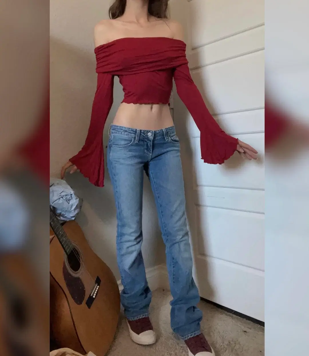 The off-shoulder style shows skin without being inappropriate—there’s a difference between alluring and unprofessional. r/fashion proves this with that burgundy off-shoulder top and flared jeans. This is feminine, fashion-forward, and clearly intentional.