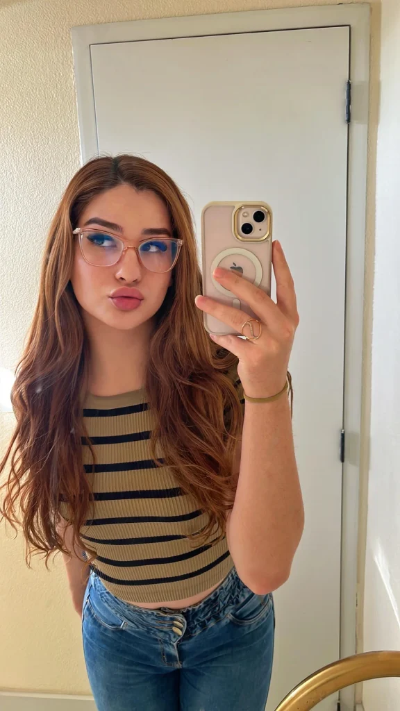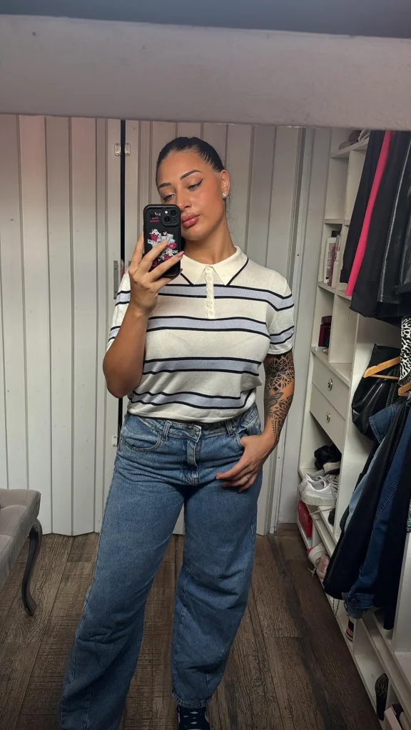 r/EvaaRayne absolutely gets it with that white and navy striped polo tucked into wide-leg jeans. This is the definition of “effortlessly put-together.”