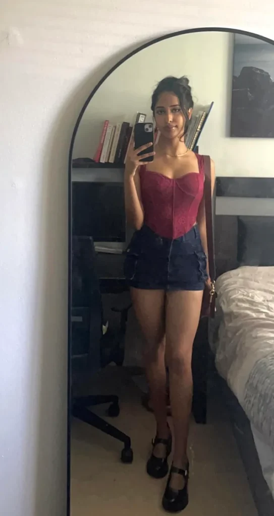 The secret sauce here is fit. Everything is tailored to her body without being tight or uncomfortable. That’s the difference between looking sloppy and looking intentional. If your mini skirt and top fit properly, you’re already 80% of the way there.