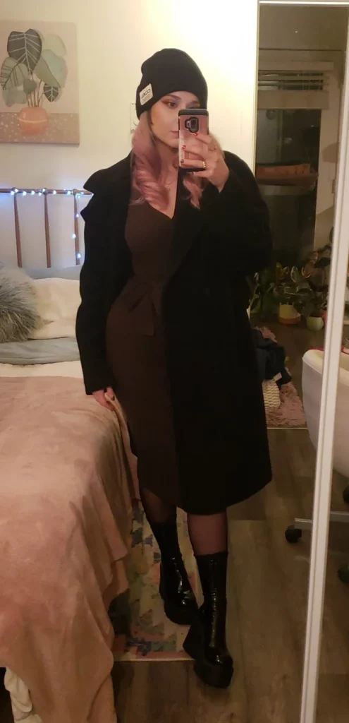 r/Felissaurus proves that all black doesn’t have to be boring with that coat, beanie, and patent boot combination. This is casual winter dressing for people who want to look effortlessly cool without actually putting in effort.