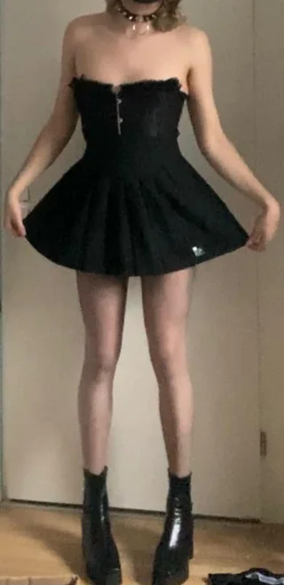 r/LovesLuna absolutely killed it with that black strapless corset mini dress, fishnet tights, and platform boots. This is goth meets party girl and I’m here for it.