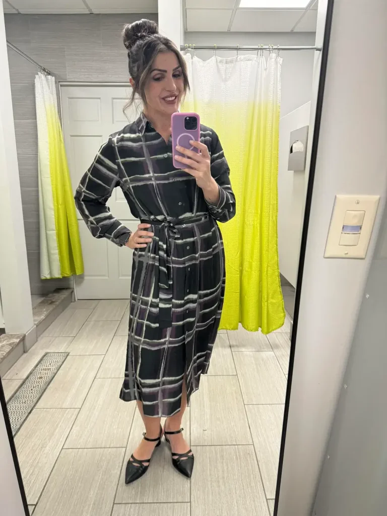 Shirt dresses are criminally underrated for work. They look polished automatically, and the belt cinches everything into an actual silhouette instead of looking like a tent. Plus, you can dress them up or down depending on your day.