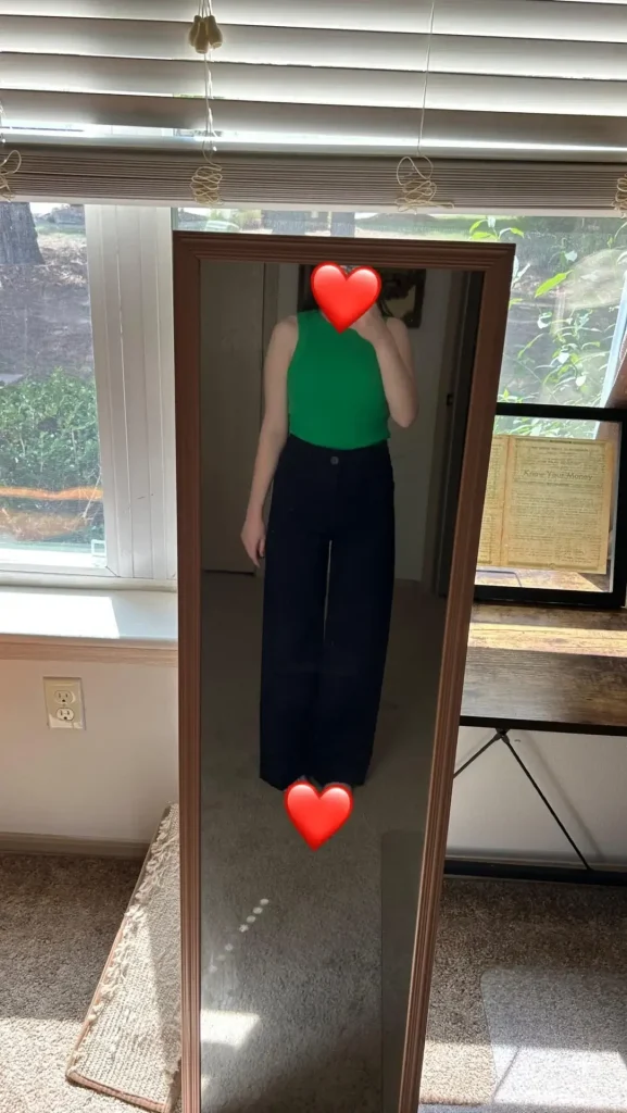 r/PetiteFashionAdvice keeps it minimal with a green sleeveless top and navy wide-leg pants. Sometimes simple really is best.
