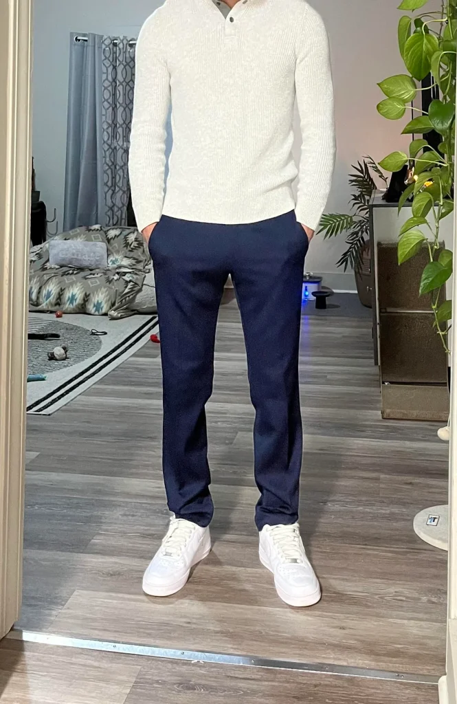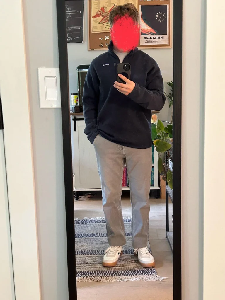 r/RedditDiver closes it out with that perfect streetwear-meets-casual vibe: black quarter-zip fleece over beige boot-cut pants and cream sneakers. This is contemporary casual done exactly right comfortable, current, and completely achievable.