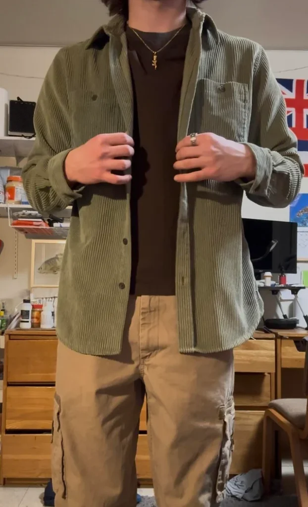 r/CalendarTricky81 absolutely nails the laid-back sophisticated look with that olive corduroy shirt jacket over a brown turtleneck and tan cargo pants. This is the “I’m comfortable but I clearly give a damn” aesthetic in perfect form.