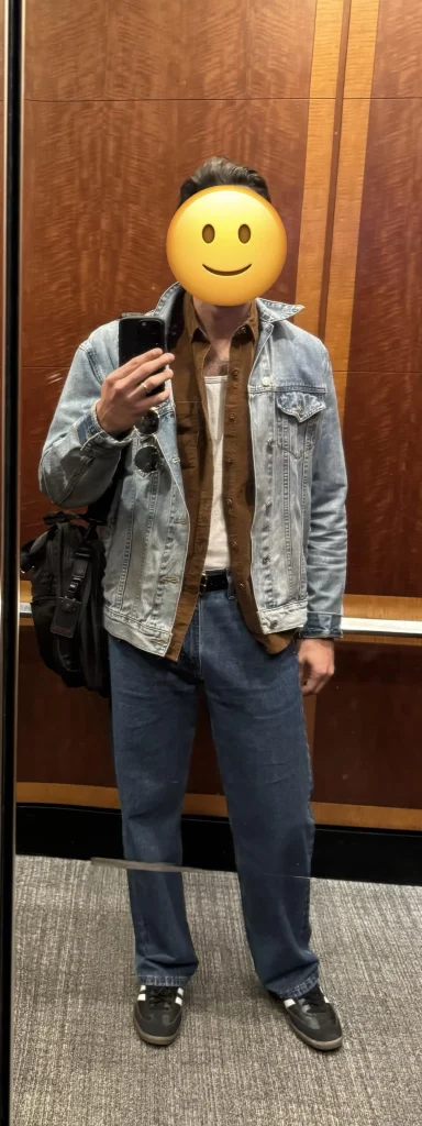 This works for weekends, casual office environments, or anywhere you need to look like a functional adult without wearing a suit. The denim jacket is particularly genius because it’s warm enough to matter but light enough that you won’t roast if you have to go inside.
