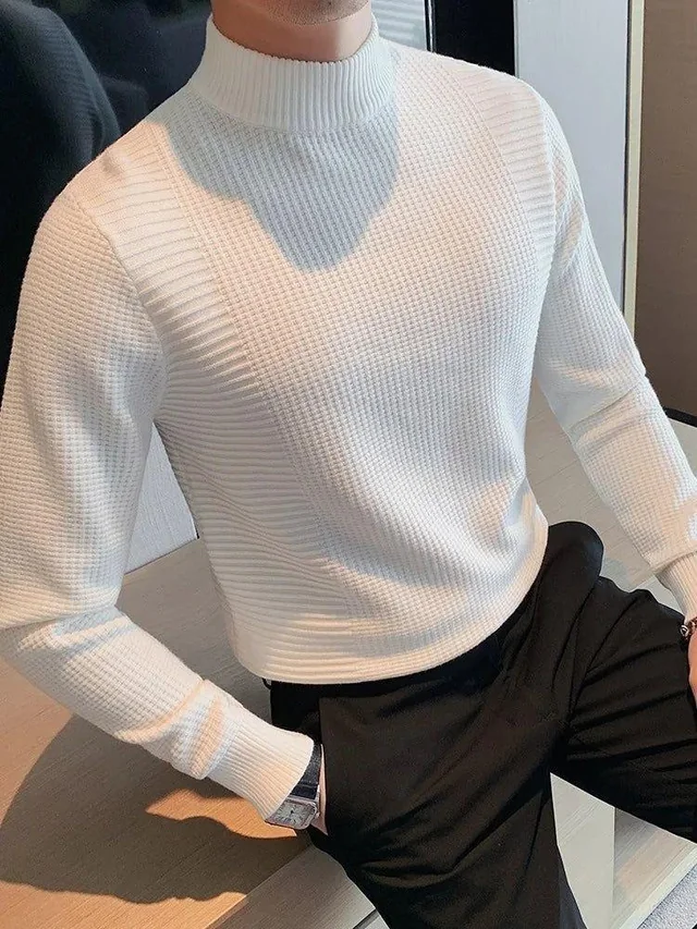 Waffle-knit sweaters are genius because they add visual interest through texture alone. You don’t need patterns or multiple colors; the knit creates dimension and makes a simple outfit look considered. White is surprisingly versatile and looks clean and intentional against darker bottoms.