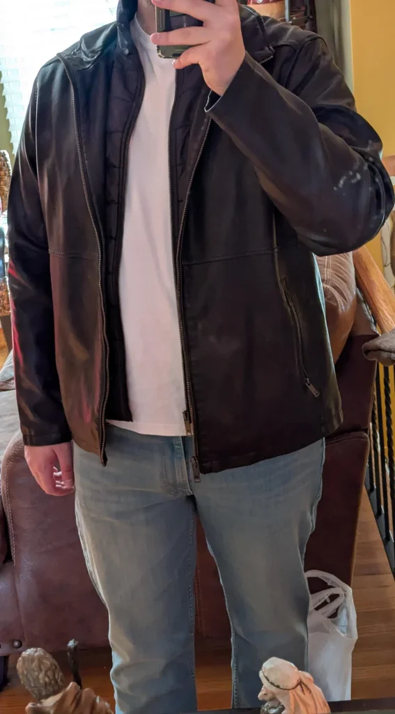 r/seb69420 brings the edge with that black leather jacket over a white tee and light jeans. This is classic rebel style that somehow never goes out of fashion.