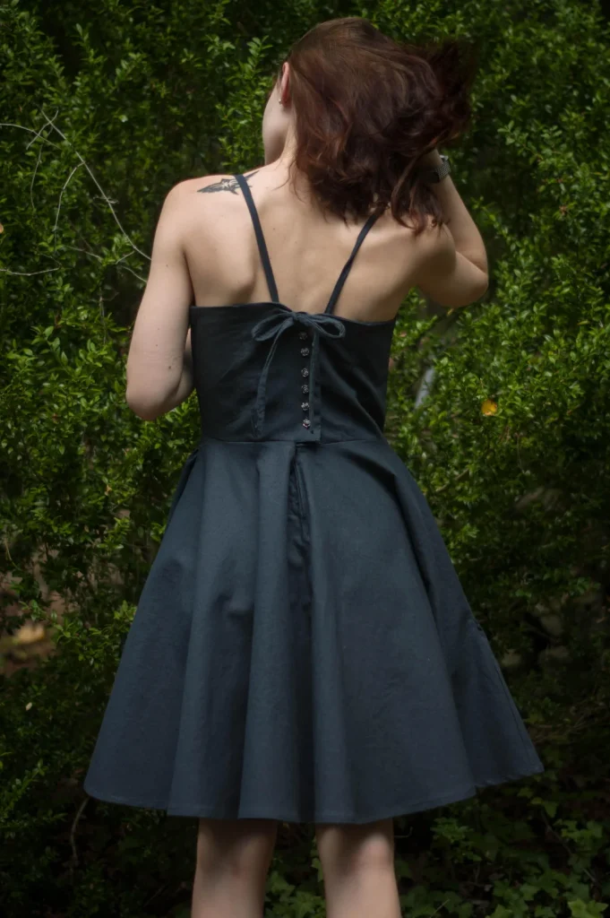 r/calliope_102 shows us that navy skirts can absolutely handle dressier situations with a black spaghetti-strap fit-and-flare dress that features a navy skirt portion. This silhouette is timeless, elegant, and works for so many occasions.