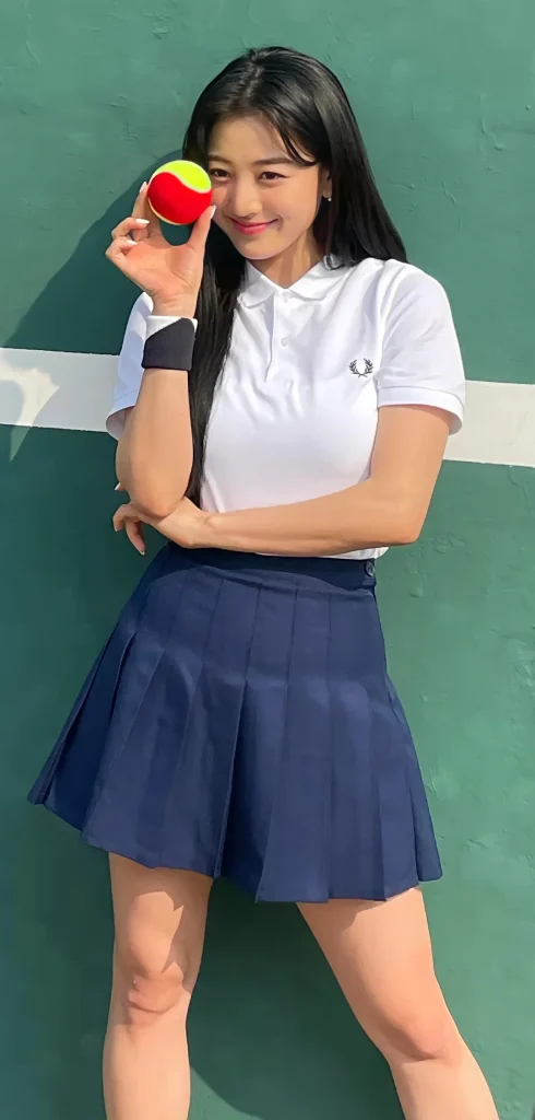 r/yummybanchan channels serious tennis club vibes with a white polo shirt and a navy pleated tennis skirt. This is preppy, sporty, and surprisingly versatile.