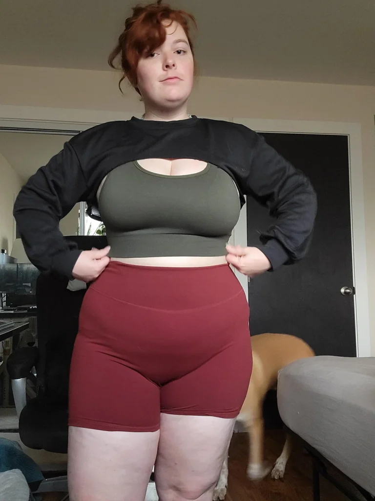 r/chasitayy keeps it casual-cool with that cropped graphic tee and black bike shorts. This is the “I’m comfortable in my skin and you should be too” energy.