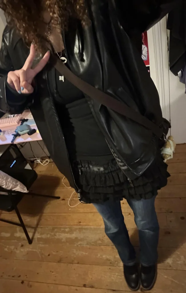 r/mikanmajo said “I’m not playing around” with that full leather look—jacket, skirt, and what appears to be leather or leather-look pants underneath. This is maximum impact, maximum confidence, zero apologies.